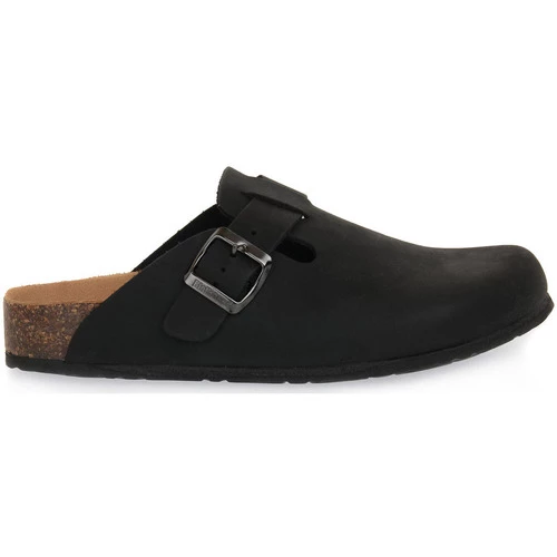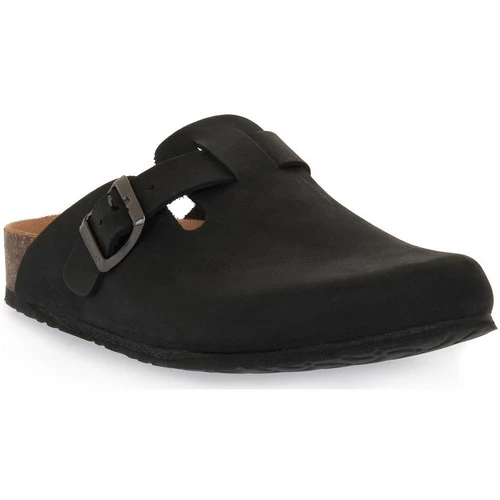 Sabot Bioline entiÚrement fabriqué en Italie avec tige en nubuck sans couture. Réglable, avec sangle avec boucle en métal. Semelle de forme anatomique en caoutchouc-liÚge, semelle en matériau thermoplastique mélangé liÚge. Couleur: Noir.